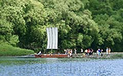 は数社が運航するが、四万十川観光開発は、屋形船のほかに明治末期から昭和30年代まで活躍した舟母船(せんばせん)と呼ばれる帆掛け船も運航。河岸からとは違った景色が楽しめ、伝統漁法の投網漁や柴漬漁が見学できる。投網漁は、小舟の舳先から10畳ほどもある網を投げ、丸く広がった網で魚を捕まえるという伝統の漁法で、10隻以上の舟が2列に並び、上流から順に網を打っていくという四万十川ならではのものです。団体旅行・社員旅行のオススメ観光スポットです