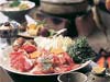| 合掌造りのいろりを囲み郷土の味に舌づつみ |